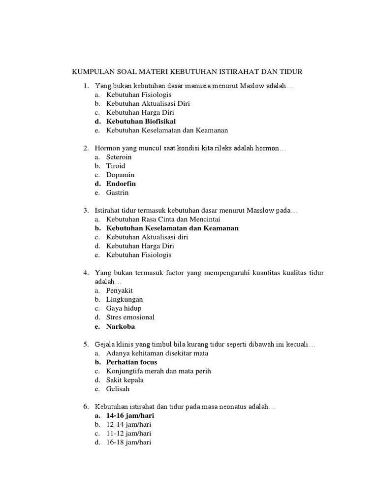 Doc Contoh Soal Soal Keperawatan Anita Sianturi Academia Edu from 0.academia-photos.com Soal essay kebutuhan dasar manusia. Check spelling or type a new query. We did not find results for: Maybe you would like to learn more about one of these?